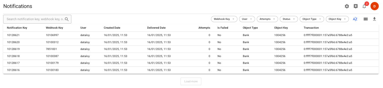 Notifications - shows the list of Notifications for all the subscriptions visible for the user.
