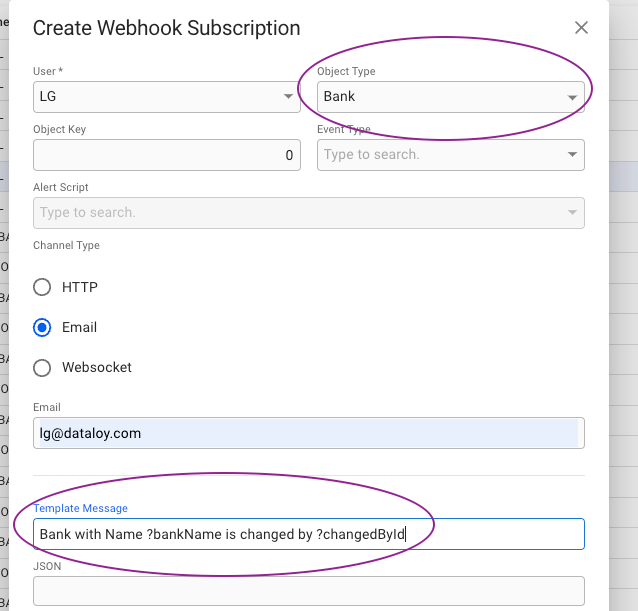 For example, when creating a subscription on Bank object , the user can use template_msg like ‘Bank with Name ?bankName is changed by ?changedById’ .